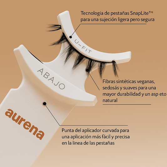 Aurena ofrece las ventajas de alternativas más económicas a las pestañas postizas, sin los efectos secundarios: